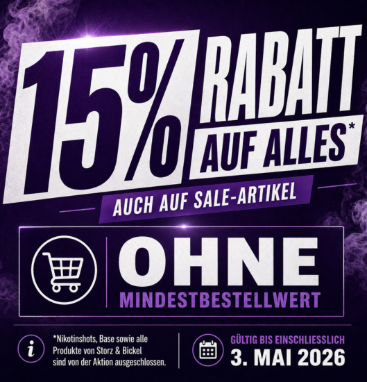 In unserem Shop vertreiben wir unter anderem Liquids/Flüssigkeiten, die Nikotin beinhalten. Hiermit weisen wir darauf hin, dass Nikotin ein Stoff ist, der stark abängig macht. Nikotinhaltige Produkte sollten nicht von Personen mit bekannter Überempfindlichkeit oder Allergien gegen Nikotin oder Geschmacksstoffen verwendet werden. Schwangeren oder stillenden Frauen, Menschen mit hohem Blutdruck, Herzkrankheiten oder anderen chronischen Krankheiten wird von der Nutzung ausdrücklich abgeraten! Bitte verwenden Sie die Produkte nicht weiterhin, wenn Sie ungewöhnliche Reaktionen Ihres Körpers bemerken.