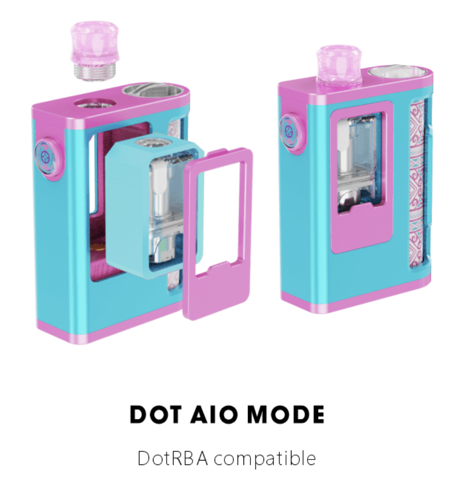 Im Lieferumfang ist bereits die neue Damn Vape Nitrous Zaion Boro RBA enthalten, die in ihrem Aufbau an die beliebte Atemporal Boro RBA angelehnt ist. Das transparente Tanksegment fasst bis zu 4,0 ml Liquid und lässt sich dank der seitlichen Einfüllöffnung mit praktischem Slider-Verschluss leicht befüllen. Das großzügig gestaltete Single-Coil Postless Deck ermöglicht die schnelle und einfache Installation einer Wicklung, während insgesamt 4 Edelstahl Mesh-Röllchen das Liquid zuverlässig aus dem untenliegenden Tanksegment zum Deck transportieren, wo es auf die Watte trifft. Eine besondere Eigenschaft der Nitrous Zaion Boro TopCoil RBA ist die beidseitige Honeycomb Airflow mit zwei Reihen von jeweils 5 Bohrungen, die über verschiedene Airflow-Control Inserts an individuelle Vorlieben angepasst werden kann. Inserts für DL, RDL und MTL sind im Lieferumfang enthalten. Je nach Positionierung und Kombination der Inserts ergeben sich zusätzliche Optionen zur individuellen Luftstromregulierung. Der Nitrous Zaion AIO Mod ist außerdem kompatibel mit anderen Boro Tanks. Mit dem im Lieferumfang enthaltenen Adapter kann auch die dotMod dotAIO RBA Einheit gemeinsam genutzt werden. Falls gewünscht, lässt sich der schicke Mod mithilfe des beiliegenden 510er Stick Adapters und Covers in einen vollwertigen Box-Mod für Standard 510er Verdampfer bis zu einem Durchmesser von 24,0 mm verwandeln.