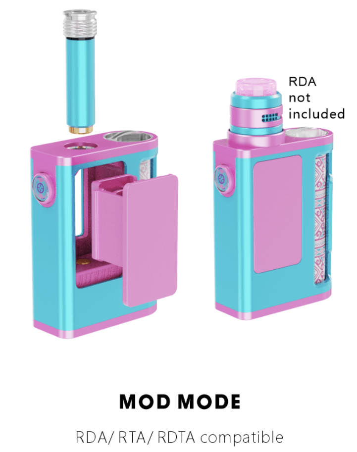 - Mitgelieferter 510er Stick Adapter und Cover ermöglichen die Nutzung als vollwertiger Box-Mod für 510er Tankverdampfer bis 24.0 mm