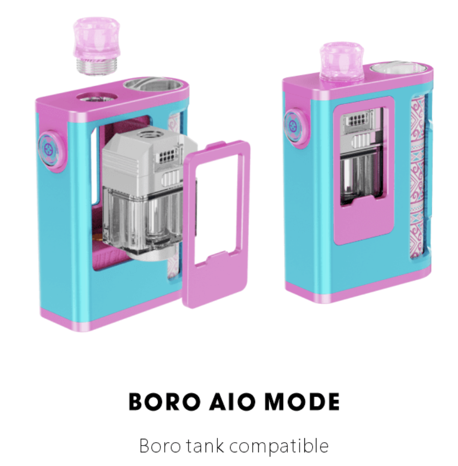 Das Nitrous Zaion AIO Kit wurde in einer Kooperation zwischen Damn Vape und Koko Sarang entwickelt und präzise mithilfe von CNC-Technologie aus Edelstahl, Aluminium und Kunststoff gefertigt. Dieser ansprechend gestaltete Mod besticht durch seine hervorragende Verarbeitungsqualität und bietet höchsten Bedienkomfort. Vom gut positionierten und äußerst ergonomischen Resin Feuerbutton über die magnetischen Seitenteile bis hinunter zur Unterseite mit ihren schützenden Gumminoppen wurde besonderer Wert auf eine angenehme Handhabung dieses stilvollen AIO Box-Mods gelegt. Der Nitrous Zaion beeindruckt durch seine Vielseitigkeit, da er sich im Handumdrehen vom Boro Mod in einen Standard 510er Box-Mod umwandeln lässt. Mit seinen kompakten Abmessungen von 73,0 x 55,0 x 24,0 mm und seinem geringen Gewicht liegt das Kit jederzeit angenehm in der Hand und garantiert ein erstklassiges Dampferlebnis. Die stilvolle Optik in verschiedenen Farbvarianten wird sicherlich bewundernde und neidische Blicke anderer Dampfer auf sich ziehen.