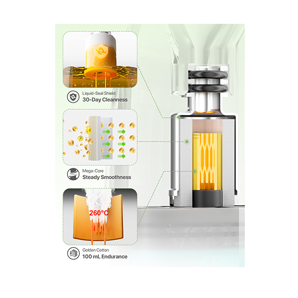 - Lange Haltbarkeit der Pods für bis zu 100 ml Liquid