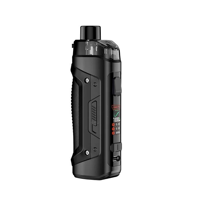 Geekvape präsentiert mit dem B100 / Aegis Boost 2 Pro Pod Kit eine noch kompaktere und schlankere Variante aus seiner beliebten Aegis Boost Reihe. Trotz der kompakten Größe wurde das moderne Design und der charakteristische Aegis-Look beibehalten, was insbesondere die treuen Fans der Aegis-Reihe erfreuen wird. Die kompakte Form macht die neue Boost 2 Pro Version zu einem echten Handschmeichler, während die griffige Soft-Leder Rückseite eine tolle Haptik vermittelt. Der "Tri-Proof" Schutz wurde weiter optimiert, sodass das Kit nun optimal vor Stößen geschützt ist und dank der IP68 Zertifizierung sogar vor Staub und Untertauchen in Wasser (bis zu 30 Minuten in 1.5 Meter Tiefe) geschützt ist. Insgesamt stehen 8 stylische Farbvarianten zur Auswahl, mit denen das Aegis Boost 2 Pro Kit definitiv bewundernde Blicke auf sich zieht.