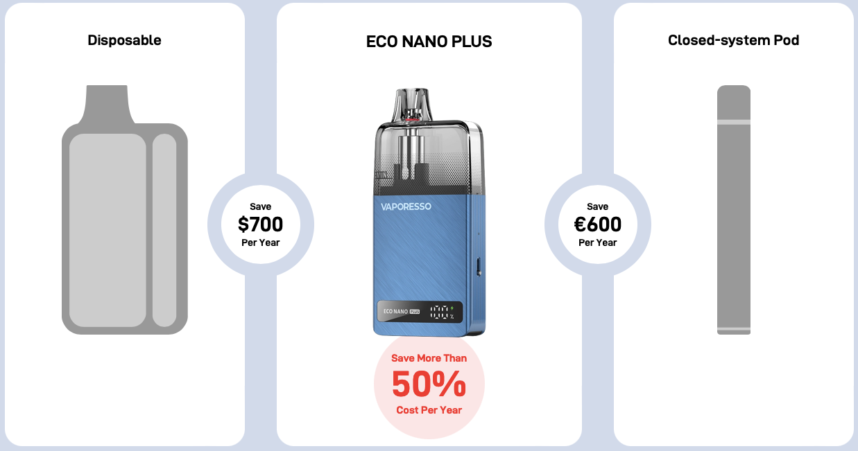 Mit dem ECO NANO PLUS Pod Kit erweitert Vaporesso die Eco-Nano-Serie um eine leistungsstärkere und ausdauerndere Variante. Das kompakte Gerät besteht aus einer leichten, widerstandsfähigen Aluminiumlegierung und liegt dank seiner ergonomischen Box-Form angenehm in der Hand. Mit seinen handlichen Abmessungen eignet sich das System ideal für den mobilen Einsatz. In Kombination mit den neuen Eco Nano Plus Lush Mesh Pods mit einem großzügigen Tankvolumen von 10 ml bietet das Kit langanhaltenden Dampfgenuss bei besonders einfacher Handhabung – ideal auch für Einsteiger. Erhältlich ist das Gerät in sechs modernen Farbvarianten.